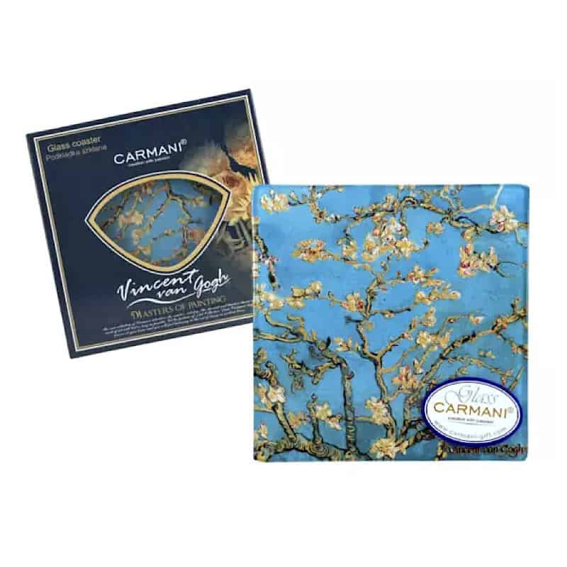Πιατάκι γυάλινο διακοσμητικό, με απεικόνιση το έργο «Αμυγδαλιά» του V.van Gogh. Σε ατομική συσκευασία δώρου!