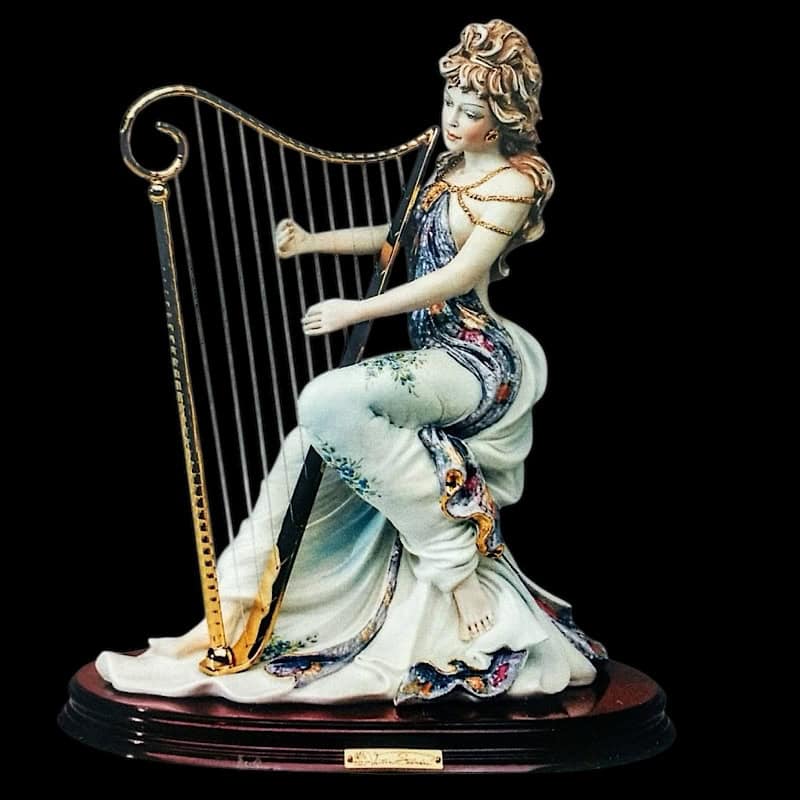 Χειροποίητη φιγούρα πορσελάνης κοπέλα με την άρπα.