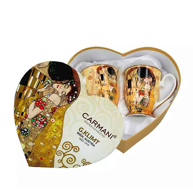Σετ 2 κούπες από πορσελάνη με μοτίβο «The kiss» του ζωγράφου G. Klimt. Για τους λάτρεις της τέχνης. Συμπεριλαμβάνεται συσκευασία δώρου! Ιδανικό για ζευγάρι!