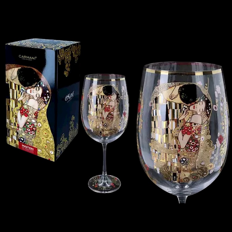 Ποτήρι κρασιού ατομικό από γυαλί, με απεικόνιση το φημισμένο έργο “Το φιλί» του Gustav Klimt.