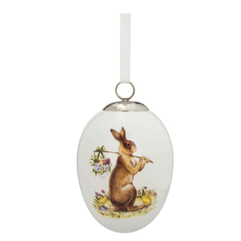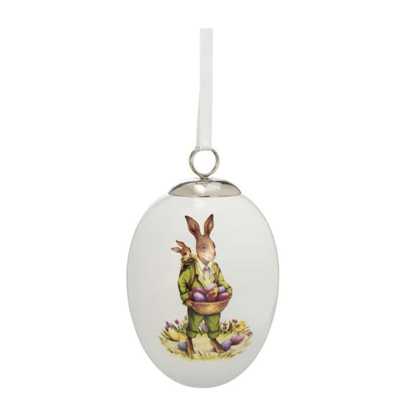 Σετ 3 τμχ. αυγά από πορσελάνη, με λαγουδάκια. Διαθέτουν κορδέλα για να κρεμαστούν σε κλαδί, δημιουργώντας μια χαρούμενη πασχαλινή διακόσμηση!