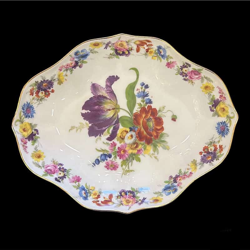Μπολ οβαλ, από πορσελάνη Βαυαρίας, διακοσμημένο με αγριολούλουδα. Στο χείλος υπάρχει μπορντούρα χρυσού. Ιδανικό για κεράσματα, υπέροχο και απλά ως διακοσμητικό.
