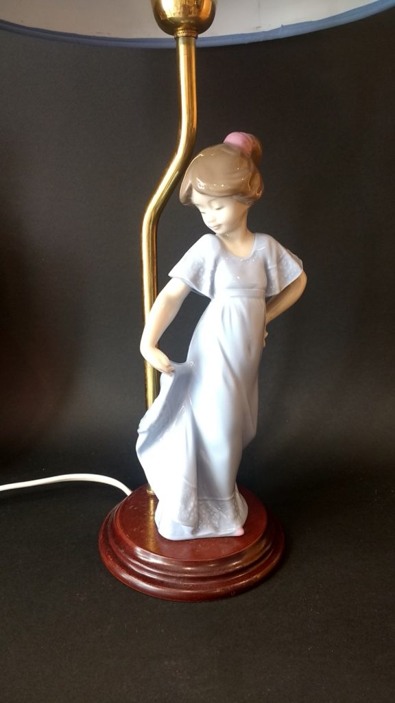 Αυτή η λάμπα με την πορσελάνινη κοπέλα της Νao μπορεί να στολίσει ένα κοριτσίστικο δωμάτιο. Το μπλε καπέλο της ταιριάζει απόλυτα με το φόρεμα της φιγούρας δίνοντας ένα μοντέρνο τόνο.