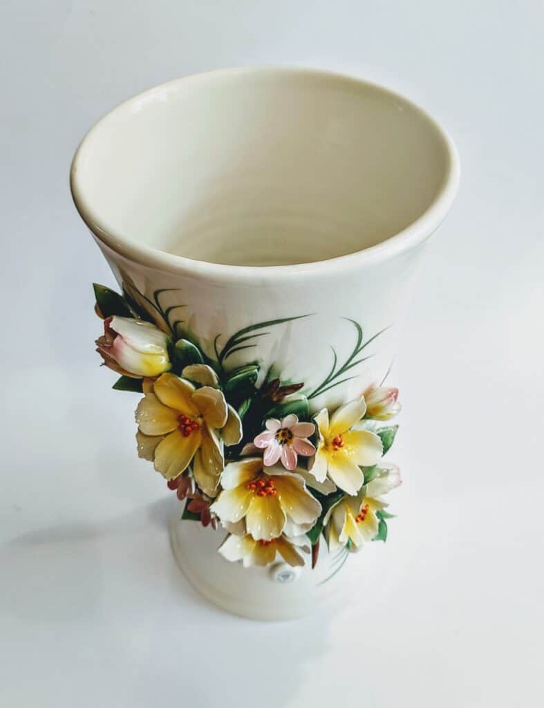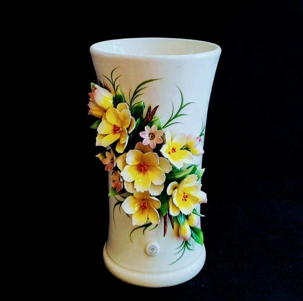 Βάζο χειροποίητο capodimonte με κίτρινα λουλούδια